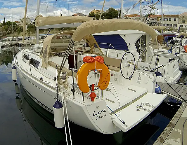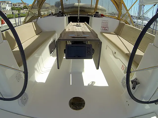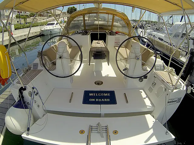 Elektrische Ankerwinde , Bimini top , Pflichtpersenning Tisch , Cocpit Kissen , Heckdusche , Badeleiter , Außenbordmotor , Beiboot mit Außenborder , Radsteuerung (2)
