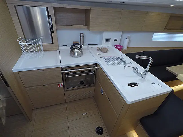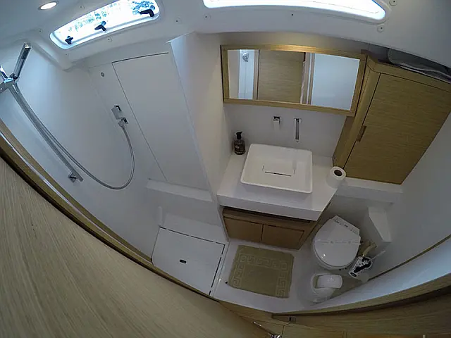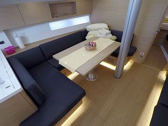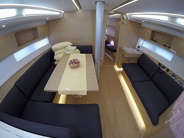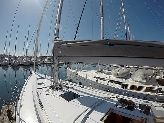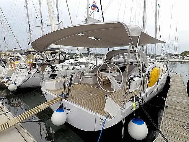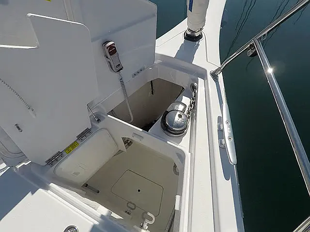Elektrische Ankerwinde , Bimini top , Pflichtpersenning Tisch , Cocpit Kissen , Heckdusche , Badeleiter , Sprayhood , Außenbordmotor , Beiboot mit Außenborder