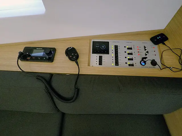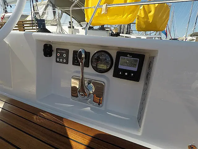 Autopilot , Kompass , Tachometer , Tiefenmesser , Seekarten , UKW Radiosender , Windmesser , GPS plotter im cockpit , Bugstrahlruder