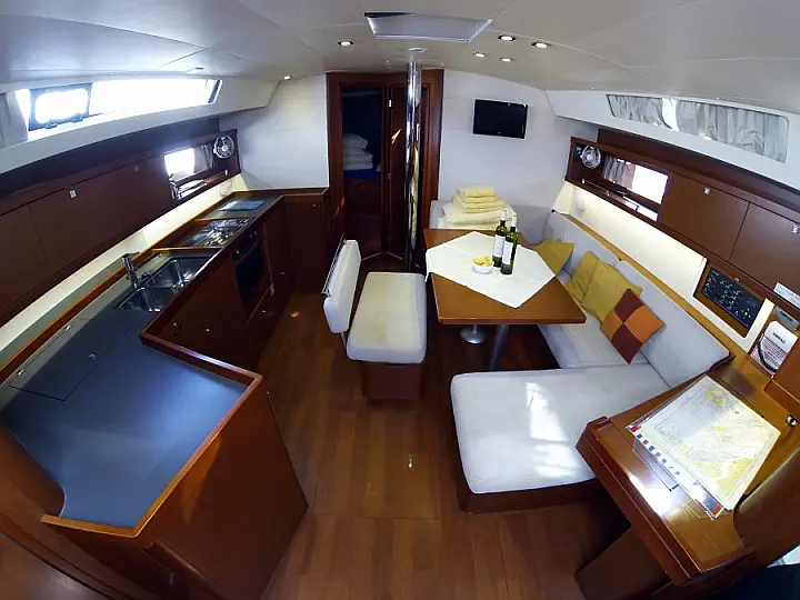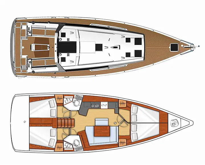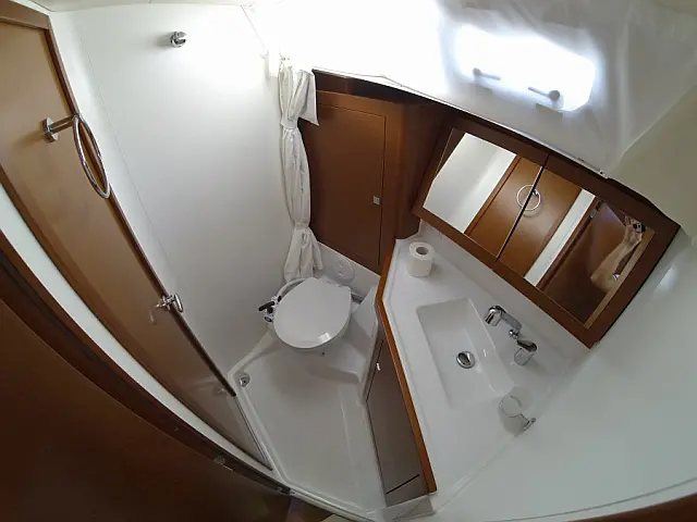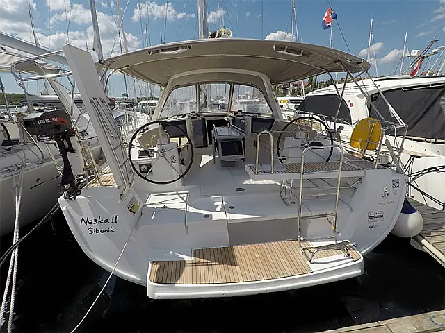 Elektrische Ankerwinde , Bimini top , Pflichtpersenning Tisch , Cocpit Kissen , Heckdusche , Badeleiter , Sprayhood , Außenbordmotor , Beiboot mit Außenborder , Radsteuerung (2)